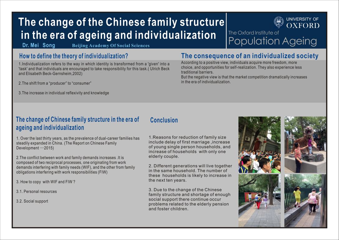 Dr Song Mei. (2015). The Change of the Chinese family structure in the era of ageing and individualizastion. Poster.